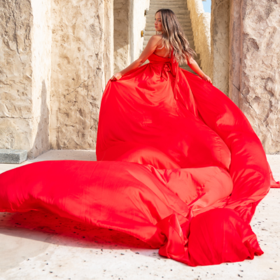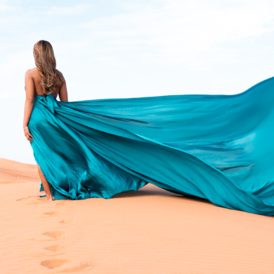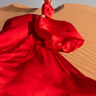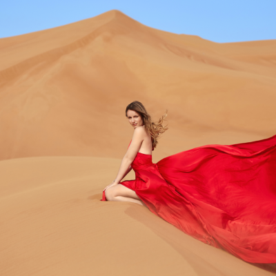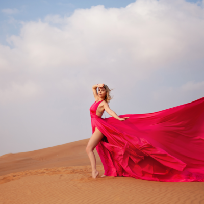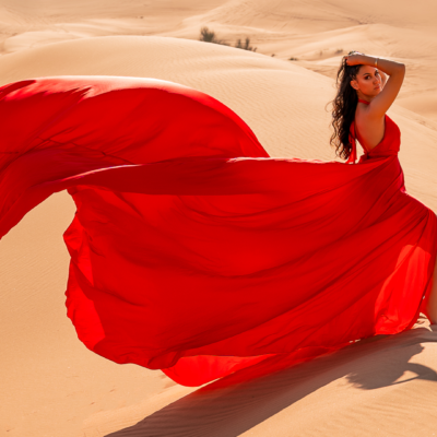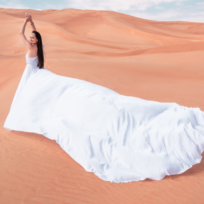 Arriving to the location you will be welcomed by the photographer and her assistant. A changing room will allow you to wear the Flying Dress with the help of our assistant. Make-up and hair needs to be done before arriving to the location. If you have chosen this option, the make up and/or hairstylist will show up to your hotel room 2,5 hours before the photoshoot time.