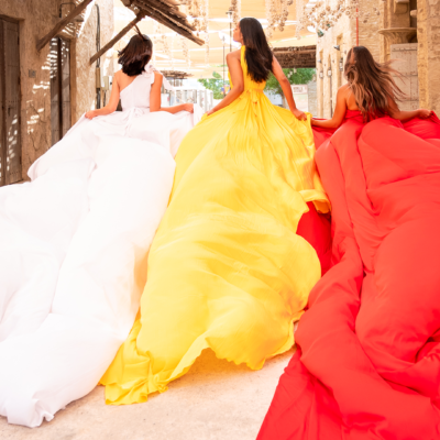 Arriving to the location you will be welcomed by the photographer and her assistant. A changing room will allow you to wear the Flying Dress with the help of our assistant. Make-up and hair needs to be done before arriving to the location. If you have chosen this option, the make up and/or hairstylist will show up to your hotel room 2,5 hours before the photoshoot time.